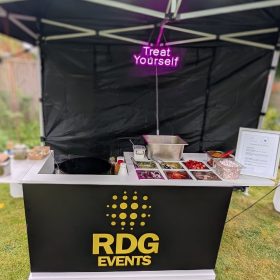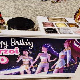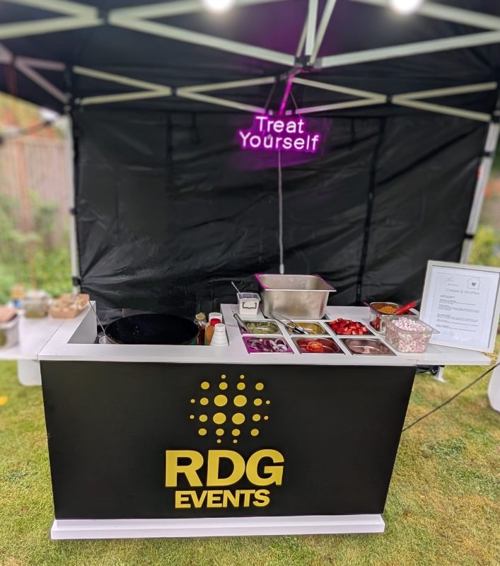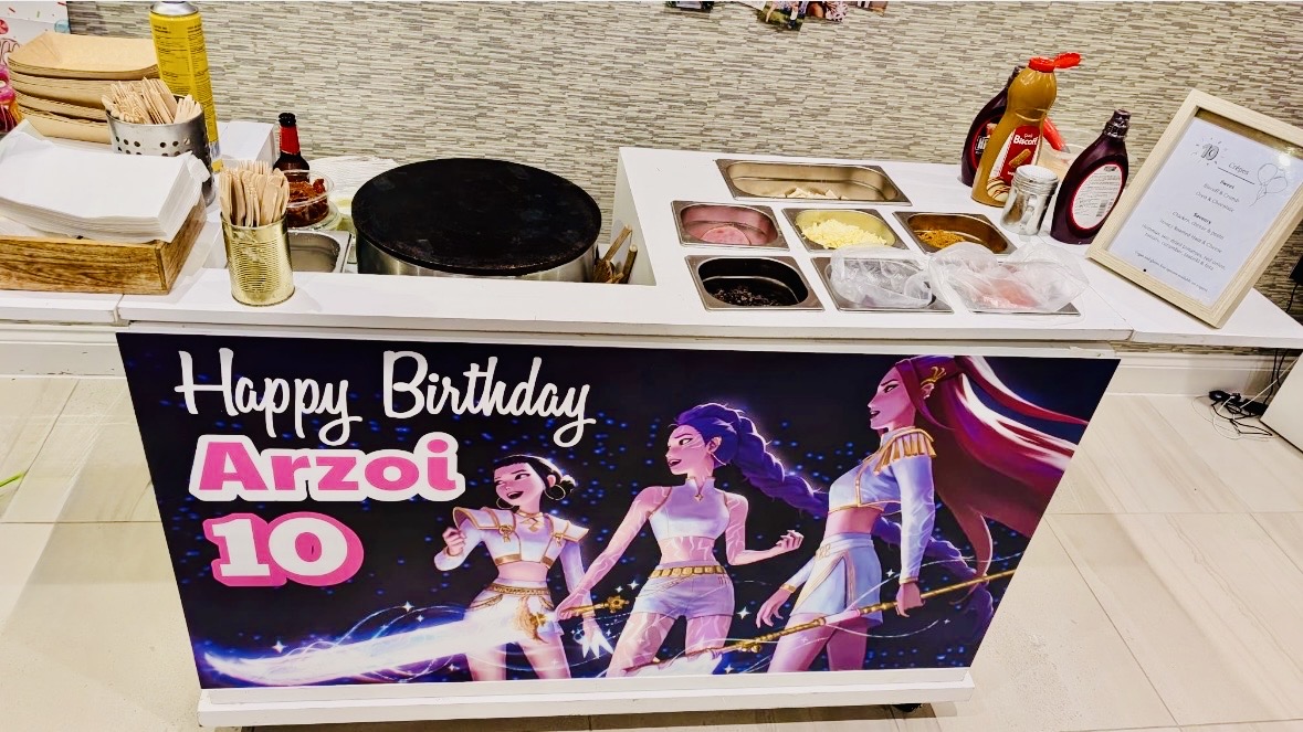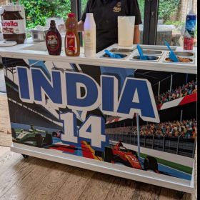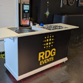 For those planning a special celebration, our food stands can be personalised with a custom front banner to match your event theme. Whether it’s a name, message, or design for a birthday, wedding, or other milestone, this simple yet effective touch adds a personal feel to your setup—all at a minimal cost. We also offer branded banners for corporate events, making it easy to showcase your logo or campaign in a fun, eye-catching way.