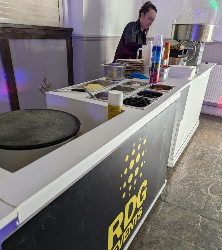 Perfect for all indoor events! We serve up a delightful variety of treats, including freshly made crêpes, warm waffles, and a colorful pick ‘n’ mix sweet selection.